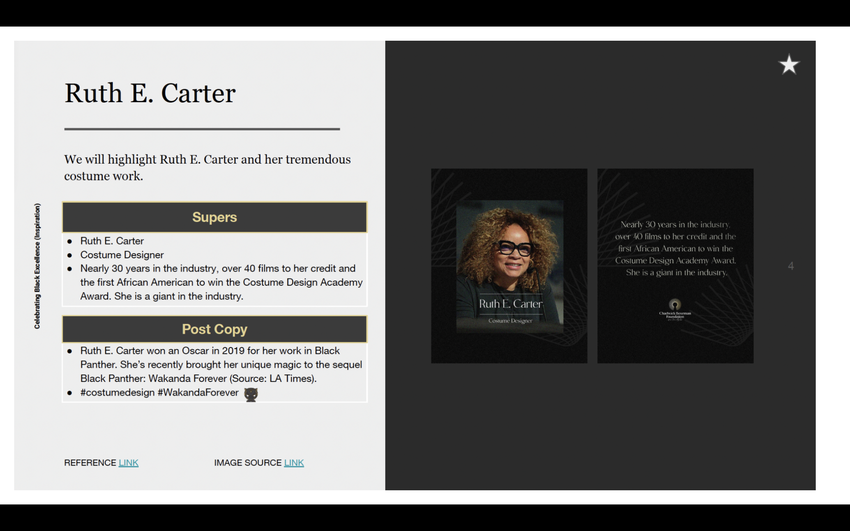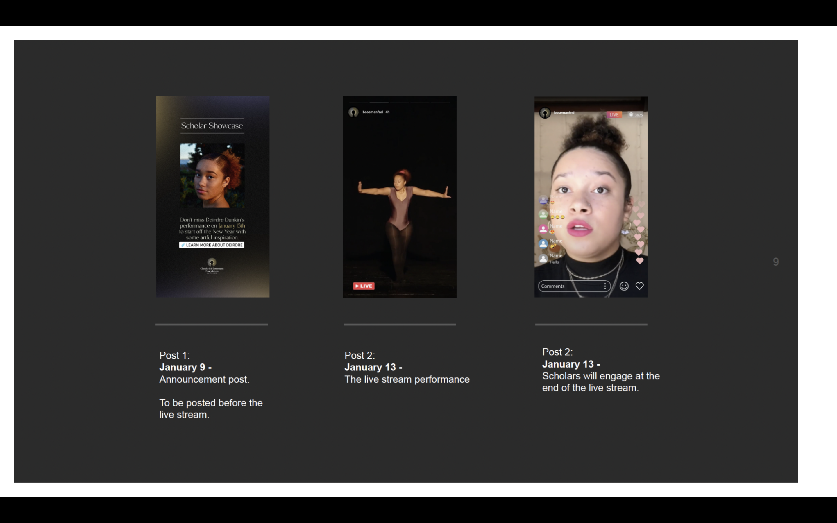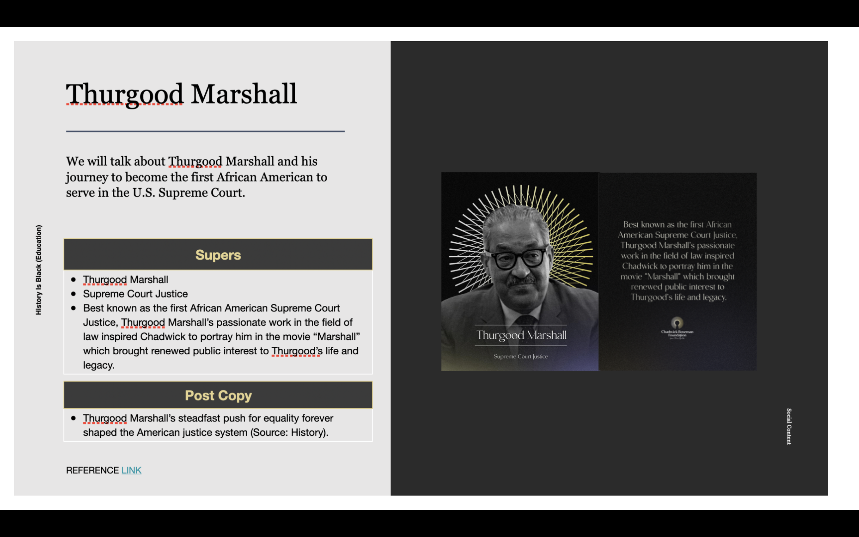 The foundation was set up in Chadwick Boseman’s memory in order to provide support for young black artists through a scholarship at his alma mater, Howard University. Our mandate was to inspire these young artists to apply for this program as well as to drive traffic towards their instagram page to raise awareness for donations.